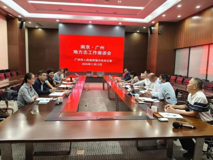 2025年11月12日,南京市地方志工作办公室党组书记、主任姜巧玲一行5人到广州调研,广州市委党史文献研究室(市人民政府地方志办公室)主任黄凯旋及相关业务人员参加座谈交流。