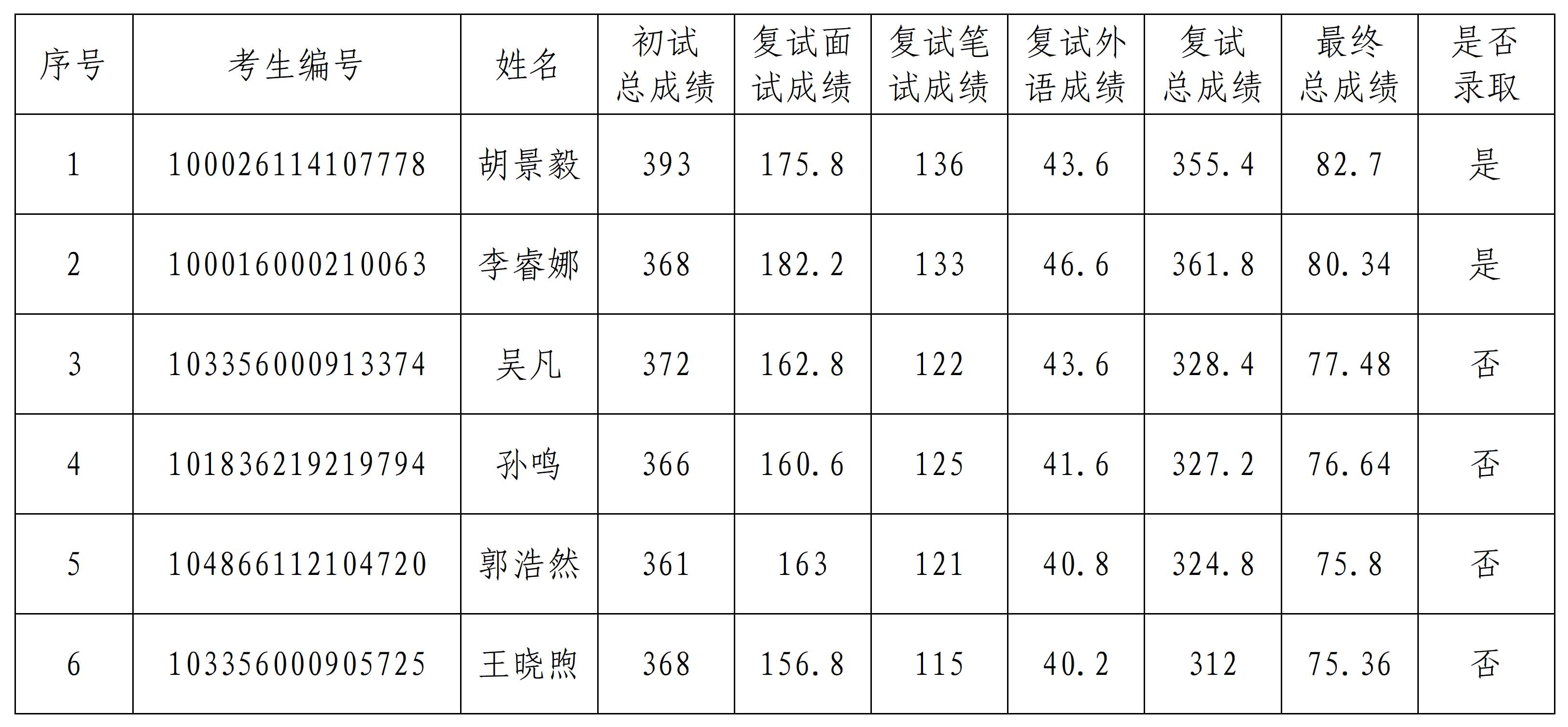 根据有关规定,现将方志学专业2026年硕士生入学考试复试成绩及拟录取名单公示如下: