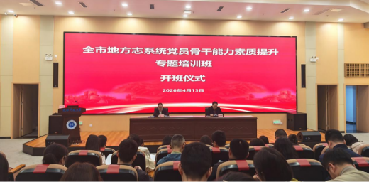 2026年4月13日,由成都市委组织部牵头,成都市地方志工作办公室主办,成都开放大学承办的成都全市地方志系统党员骨干能力素质提升专题培训班在成都开放大学天府校区开班。来自全市地方志系统50名党员骨干参加培训。成都市志办党组成员、副主任王欣作开班动员讲话,成都开放大学党委专职副书记李王英出席开班式并致辞。