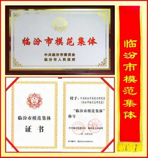 2025年9月26日,临汾市召开劳动模范、先进工作者和模范集体表彰大会,中共临汾市委党史研究室(临汾市地方志研究室)荣获“临汾市模范集体”荣誉称号,受到市委、市政府表彰。荣誉来之不易,十分珍贵,体现了临汾市委、市政府对党史和地方志事业的高度重视,是对临汾党史方志工作者的高度肯定和有力鼓舞。